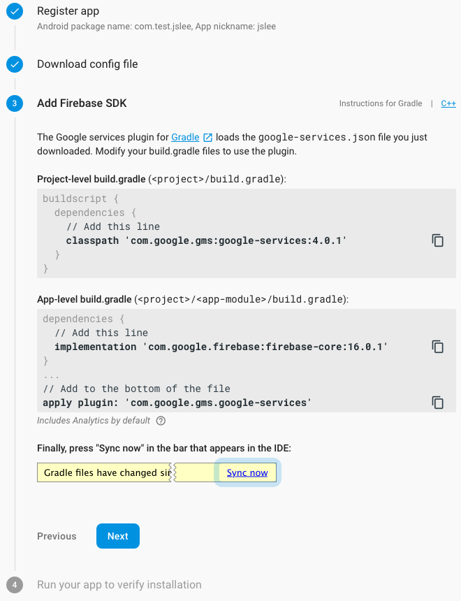 3-3. google-services.json 파일 다운 받아 프로젝트에 추가하기